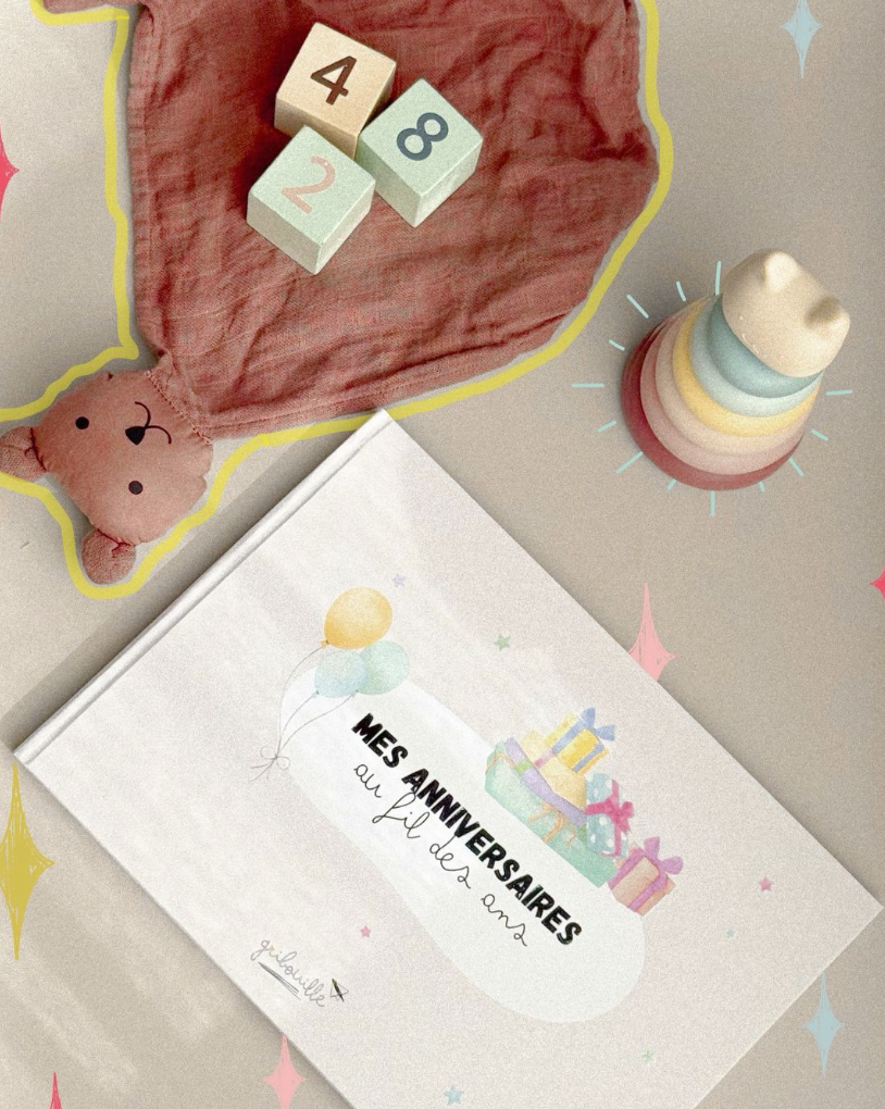L’album anniversaire vous permettra de garder tous les meilleurs souvenirs d’anniversaires de votre enfant : le thème, les jeux et activités, les personnes présentes, l’invitation, etc. Il est entièrement personnalisable, avec des emplacements dédiés aux photos, aux textes ou même aux dessins. 8 anniversaires au total, non définis, pour commencer et gérer l’album comme on le souhaite 🤍