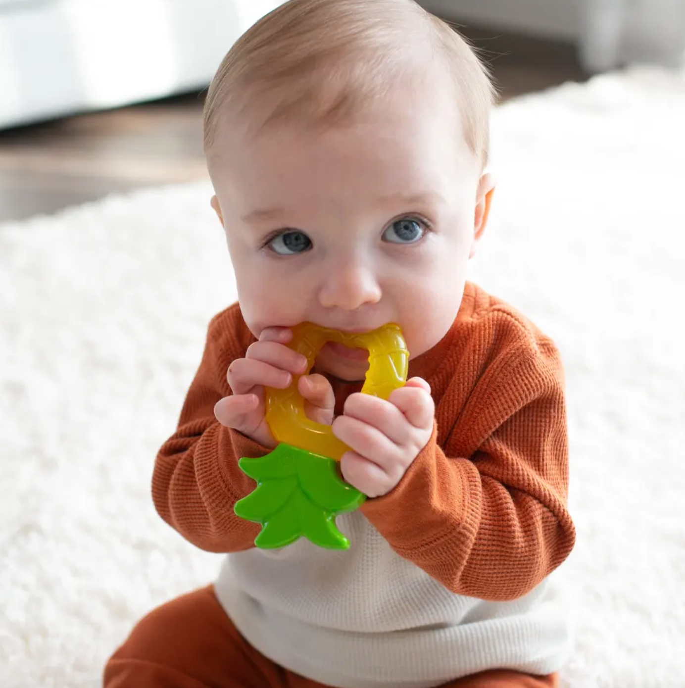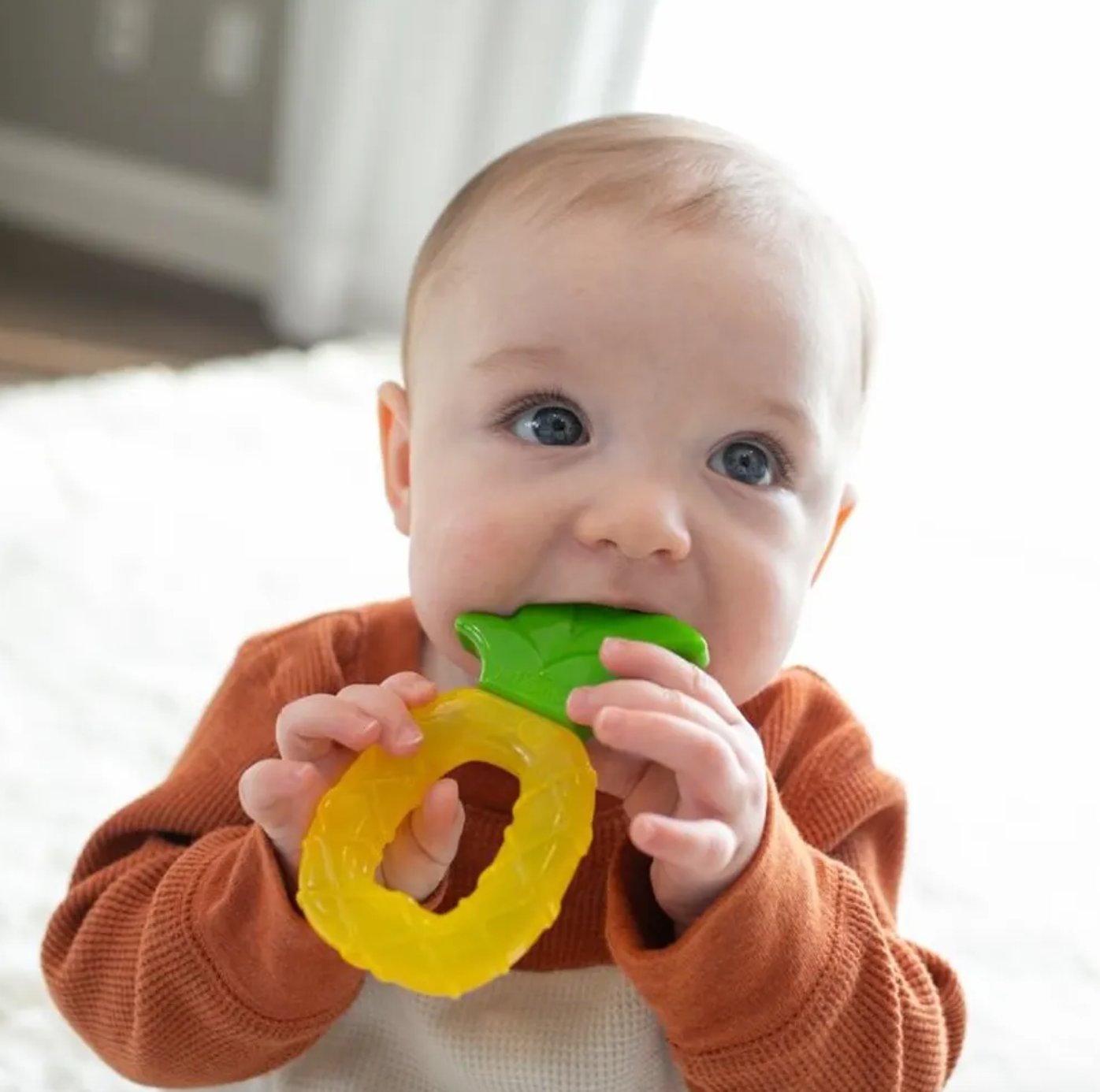 L’Anneau de Dentition Ananas de Dr Brown’s est conçu pour apaiser bébé pendant la poussée dentaire. Ses surfaces douces et texturées massent les gencives et soulagent la pression, tout en offrant un design attrayant en forme de ananas. Sa prise ergonomique permet à bébé de saisir facilement l’anneau pour atteindre même les zones les plus difficiles à traiter. Pour un effet apaisant supplémentaire, l’anneau peut être refroidi au réfrigérateur, offrant une double action : apaisante et rafraîchissante.