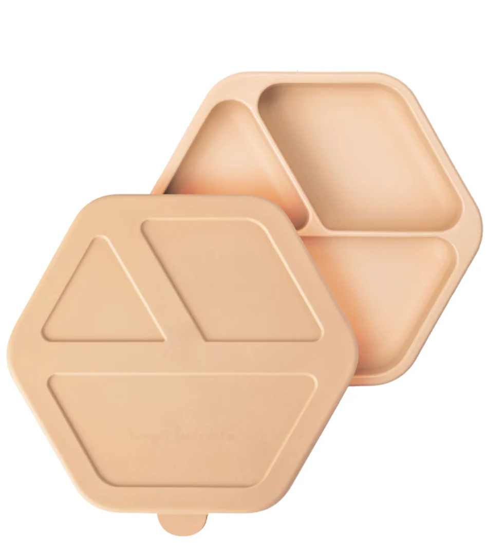 Assiette compartimentée avec couvercle en silicone beige – Tiny Twinkle
