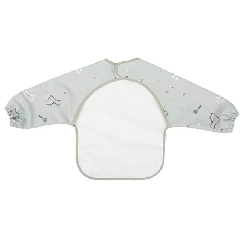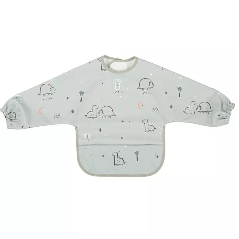 Le Bavoir à Manches Imprimé Jurassic bleu est le compagnon idéal pour les repas et les jeux de votre bébé. Avec des manches longues et ajustables, une fermeture velcro et un matériau en coton doux, il garantit protection et confort pour votre petit.