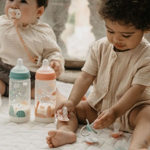 Le biberon SX Pro Dreams 360 ml de la marque Suavinex est conçu pour accompagner les repas des bébés gourmands ou de plus de 6 mois. Sa tétine symétrique SX Pro à débit rapide reproduit la sensation naturelle de l’allaitement et laisse passer des liquides plus denses, comme les bouillies légères. Avec sa valve anti-colique, il limite l’inconfort digestif, tandis que sa base et sa forme assurent une succion naturelle et un développement bucco-dentaire respecté.