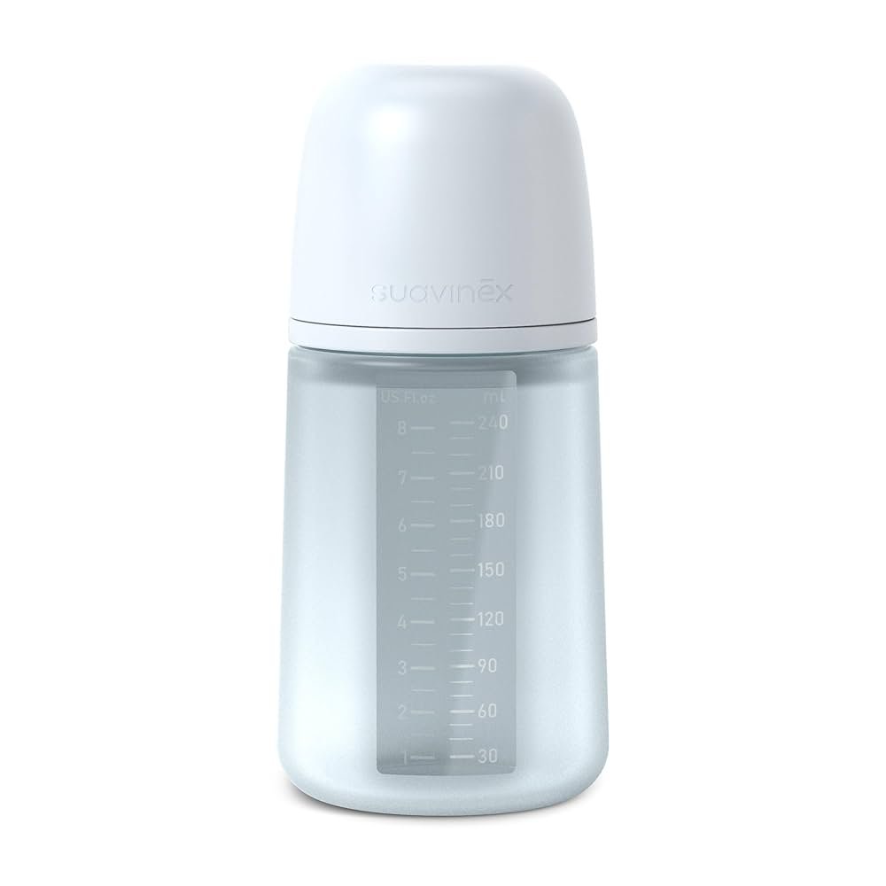 Biberon en silicone bleu 240ml (3m+) – Suavinex