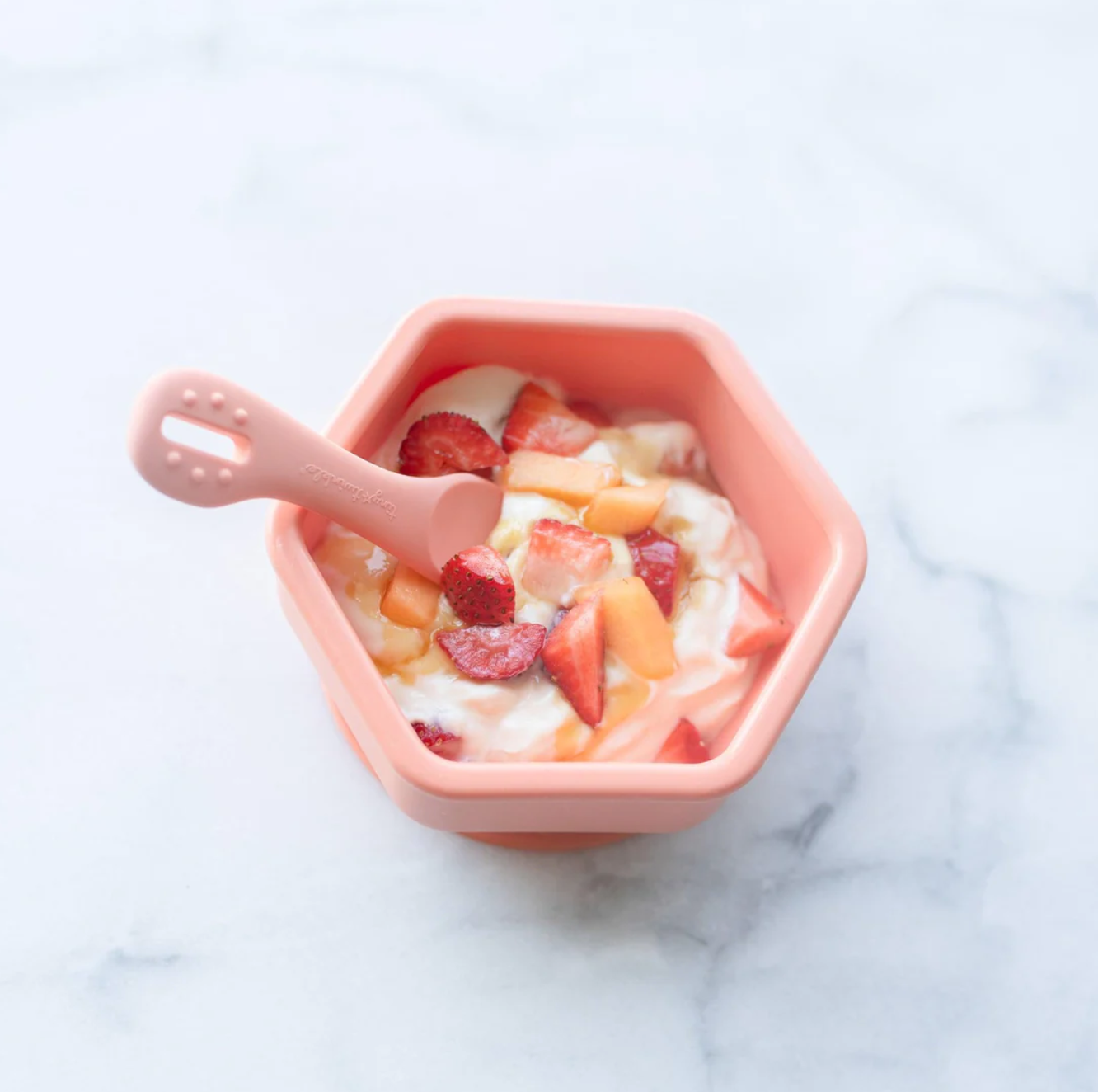 Le bol en silicone rose Tiny Twinkle avec couvercle est conçu pour simplifier les repas des tout-petits tout en répondant aux besoins des parents modernes. Sa base à ventouse innovante offre une fixation solide sur toutes les surfaces planes, garantissant ainsi des repas sans éclaboussures et sans stress. Fini les renversements accidentels : votre enfant peut se concentrer sur l’apprentissage de l’autonomie alimentaire en toute tranquillité.