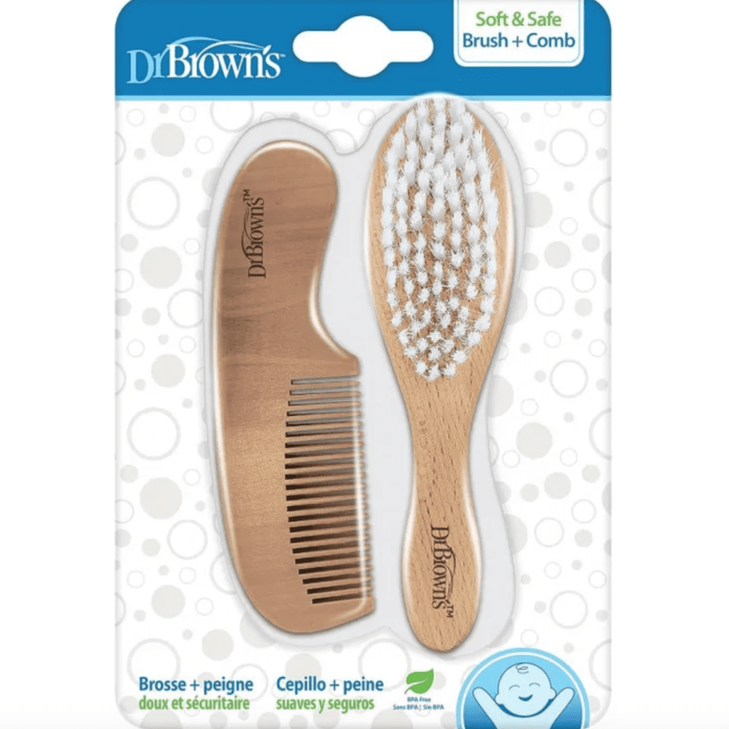 La Brosse et Peigne Doux en Bois de Dr Brown’s sont indispensables pour les soins des cheveux de votre bébé dès la naissance. Fabriqués à partir de matériaux sûrs et doux, ils sont conçus pour éviter les irritations tout en nettoyant délicatement les cheveux fins ou épais de bébé. La brosse à capuchon aide à prévenir le bonnet du berceau et protège les zones sensibles du crâne. Son design ergonomique offre une prise confortable pour les adultes. Ce kit est le cadeau parfait pour une fête prénatale et un produit essentiel pour les parents.