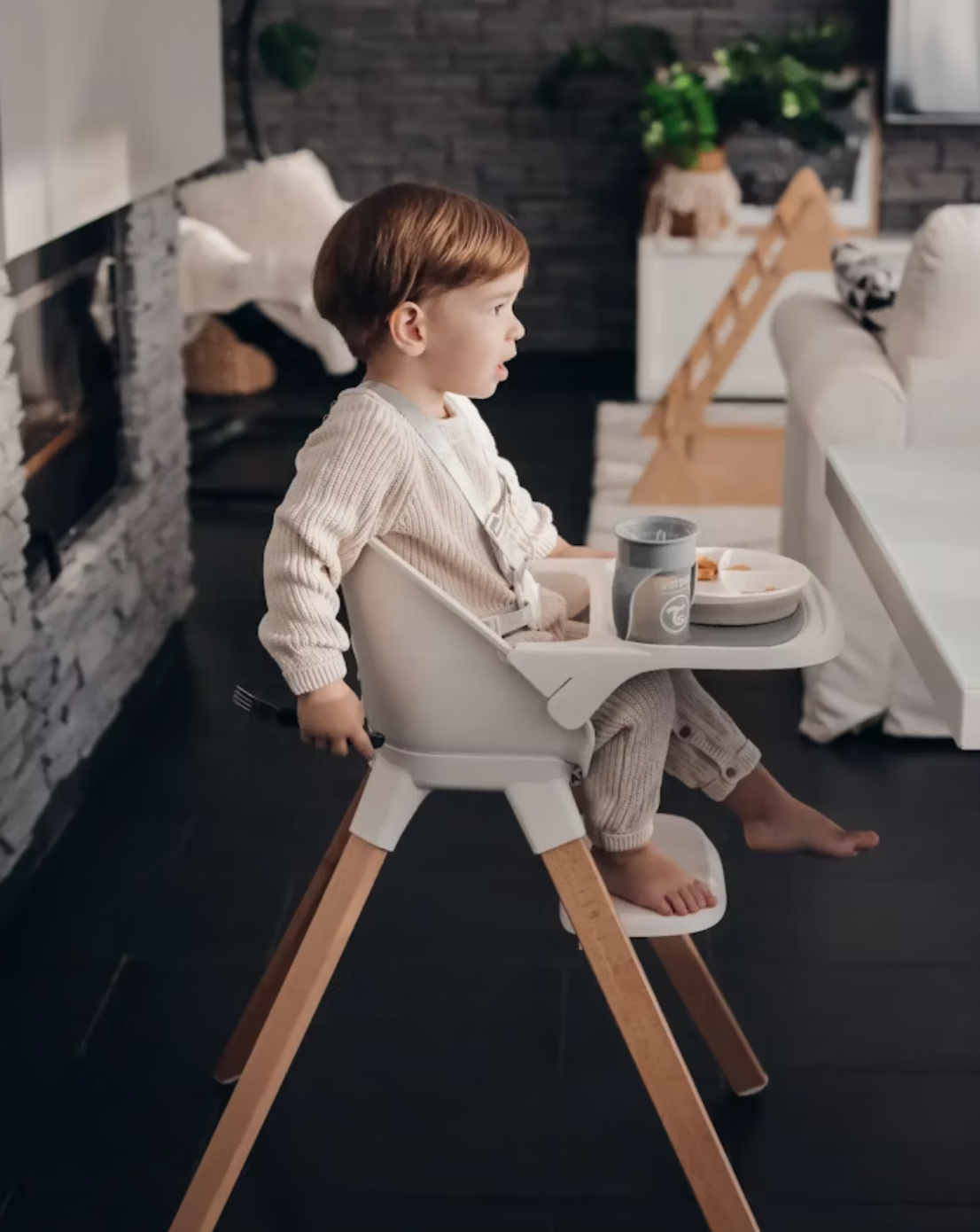 Cette chaise haute, à la fois élégante et pratique, a été spécialement conçue pour accueillir les enfants capables de s’asseoir seuls, jusqu’à 3 ans ou 15 kg.