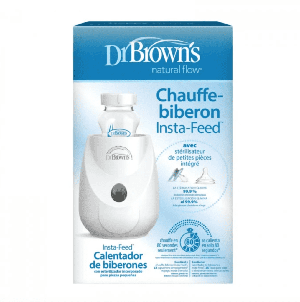 Le chauffe-biberon et stérilisateur InstaFeed de Dr. Brown’s est un appareil compact et polyvalent, conçu pour simplifier la routine des parents. Avec sa capacité à chauffer les biberons et les aliments pour bébé en seulement 80 secondes, il garantit une alimentation rapide et pratique à tout moment.