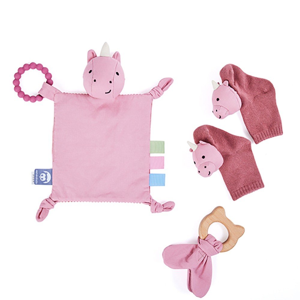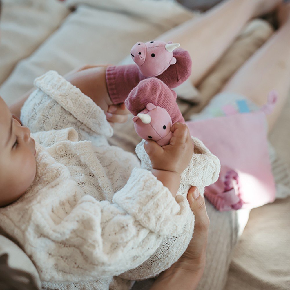 Ce coffret bébé est le cadeau idéal pour un nouveau-né. Conçu pour accompagner ses premiers pas et stimuler son éveil, il comprend des chaussettes douces avec un hochet qui encouragent la motricité et la coordination, transformant chaque coup de pied en un moment de plaisir. Un tissu multifonctionnel aux textures variées est également inclus, idéal pour l’éveil sensoriel et l’exploration de nouvelles sensations par le toucher. Enfin, un anneau de dentition en bois avec une surface antidérapante complète le coffret. Conçu pour soulager les gencives lors des poussées dentaires et faciliter la prise en main, il offre un ensemble pratique, esthétique et fonctionnel, créé pour stimuler, accompagner et réconforter bébé dès ses premiers jours.