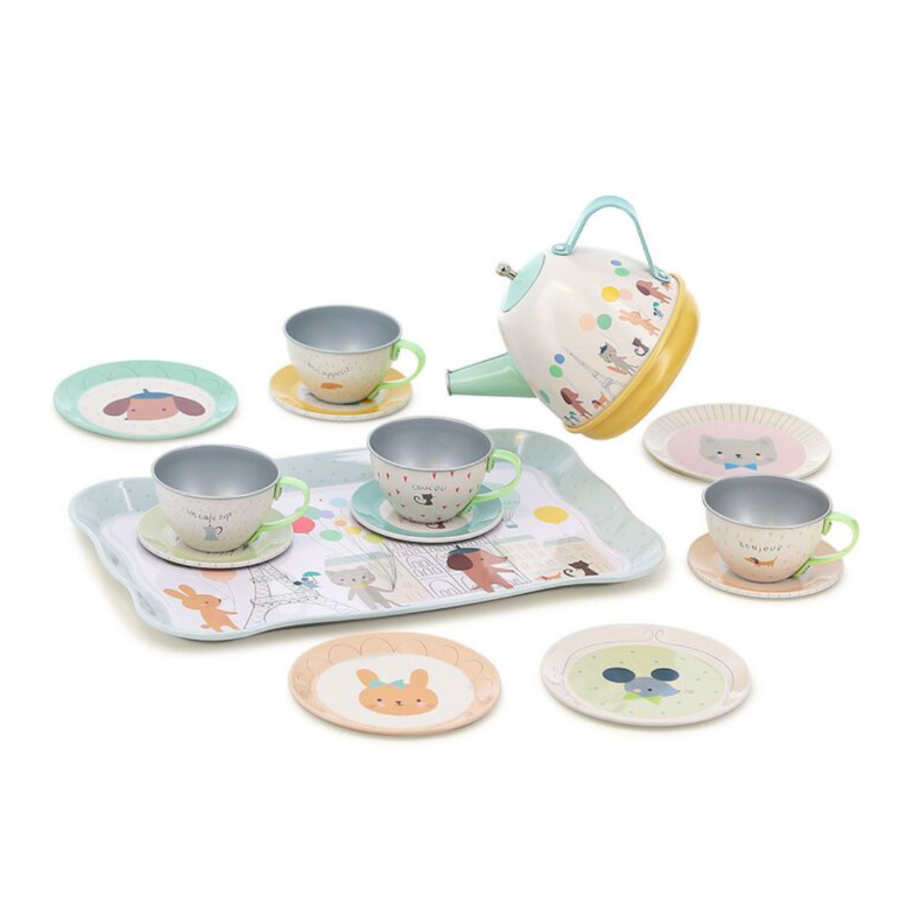 Vilac a conçu cette dinette musicale en métal tout en douceur et poésie, pour les enfants à partir de 3 ans. Une théière magique joue une douce mélodie quand on la penche pour servir le thé comme les grands.