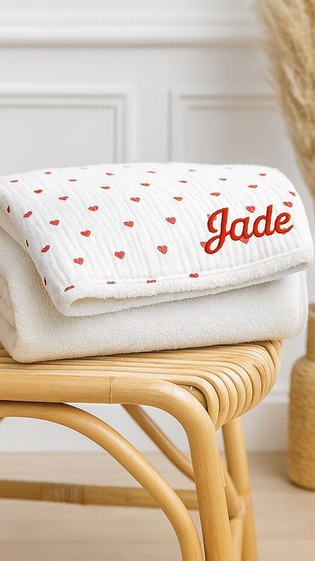 ✨ Une couverture câline et pleine de cœurs, parfaite pour entourer bébé d’amour dès ses premiers jours.