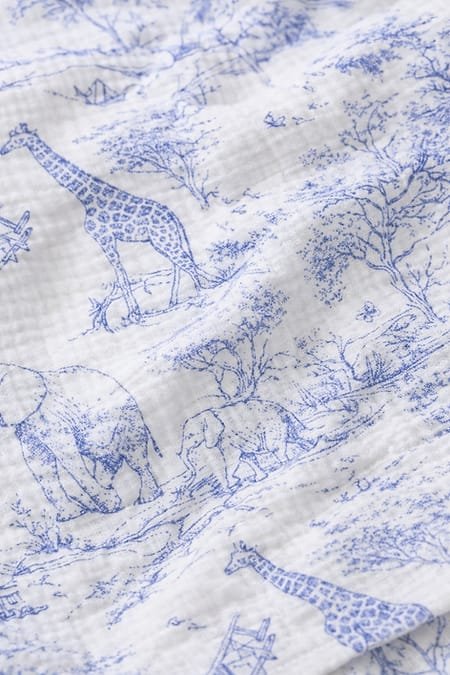 Son motif façon Toile de Jouy, couleur bleu nuage est apaisant, est parfait pour créer un univers doux et intemporel autour de bébé.