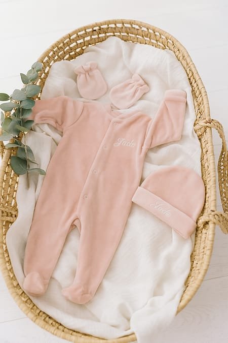 Le rêveur, trousseau 3 pièces, velours rose (sans broderie)