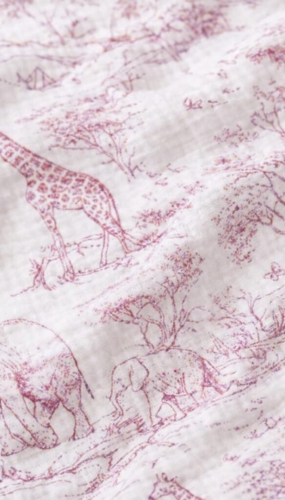 Il est conçu avec un côté en gaze de coton, doux et délicat pour le confort de bébé et une face intérieure en polyester imperméable, idéale pour un nettoyage facile au quotidien.