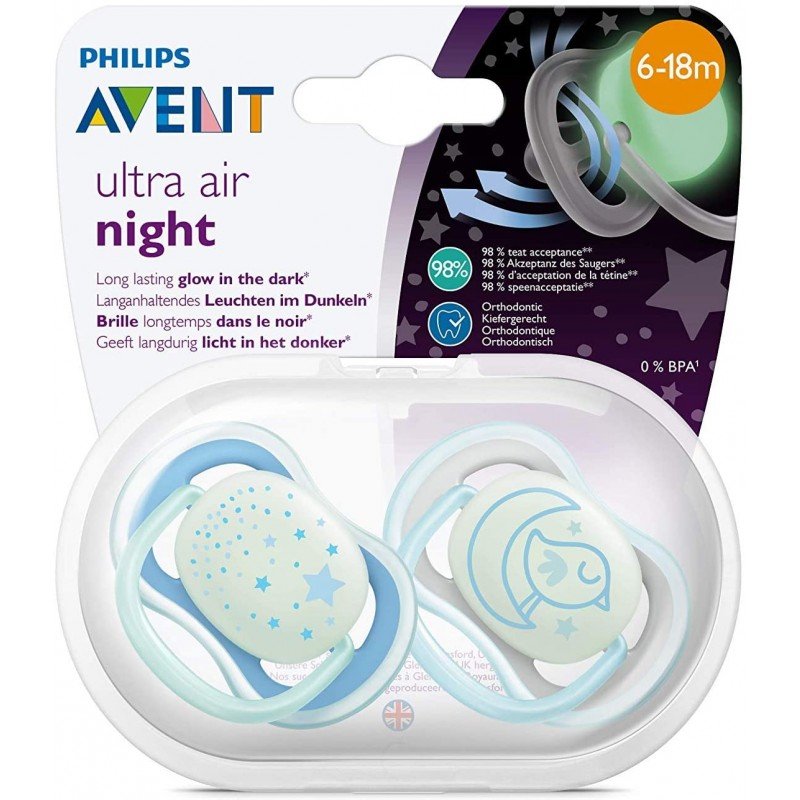 Lot de 2 sucettes ultra air night 6/18m – Avent