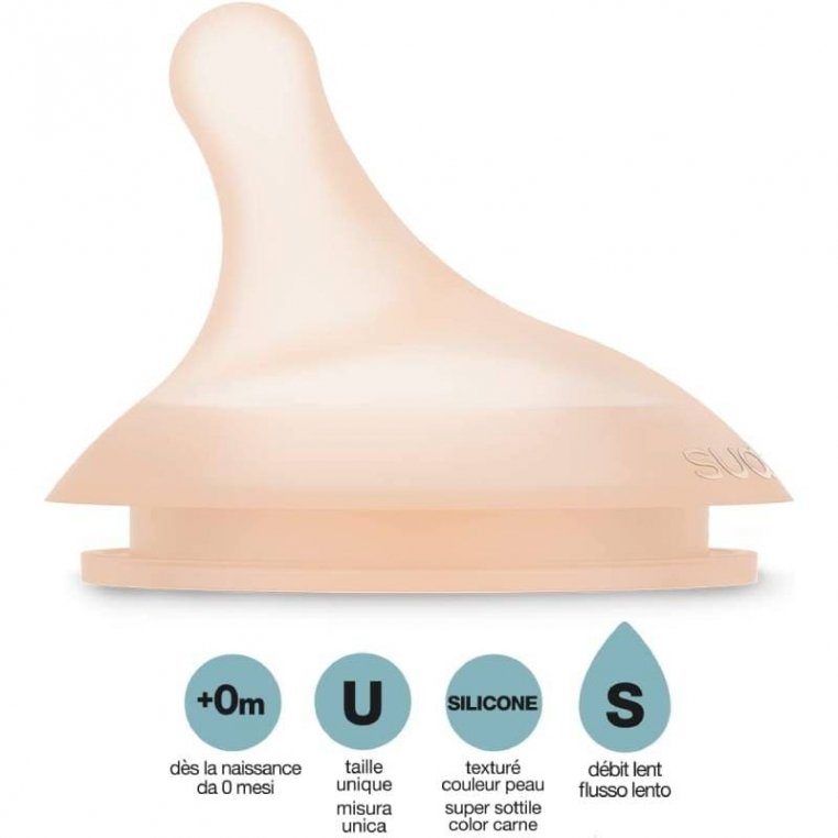 Débit (s) lent : Laisse passer une faible quantité de liquide, idéal pour les premières tétées de lait ou pour l’eau