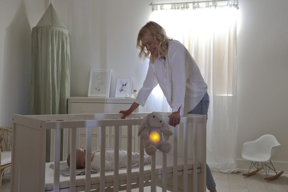Les LoveLight™ offrent les éléments sonores, tactiles et visuels qui rassurent bébé. Aux 4 mélodies et 4 bruits blancs que jouent nos douces peluches musicales s’ajoute une fonction d’enregistrement pour que les parents puissent laisser un doux message ou chantonner la berceuse préférée de leur enfant. De plus, Billy le Lapin s’illumine d’une lueur chaleureuse qui pulse doucement pour apaiser les tout-petits, avec 5 couleurs et 2 effets lumineux. Pratique, grâce au détecteur de mouvement Shake&Play une simple secousse de la peluche permet de redémarrer la lumière, les berceuses et le message sonore enregistré par les parents. Les LoveLight™ peuvent aussi être accrochées au lit de bébé, tout comme un mobile de nuit. Le moniteur rechargeable (usb-c) et la peluche peuvent aussi être utilisés séparément : une veilleuse lumineuse nomade qui pourra être posée sur la commode de la chambre et le doudou qui accompagnera l’enfant. Elles sont également dotées d’une minuterie automatique de 30 min.