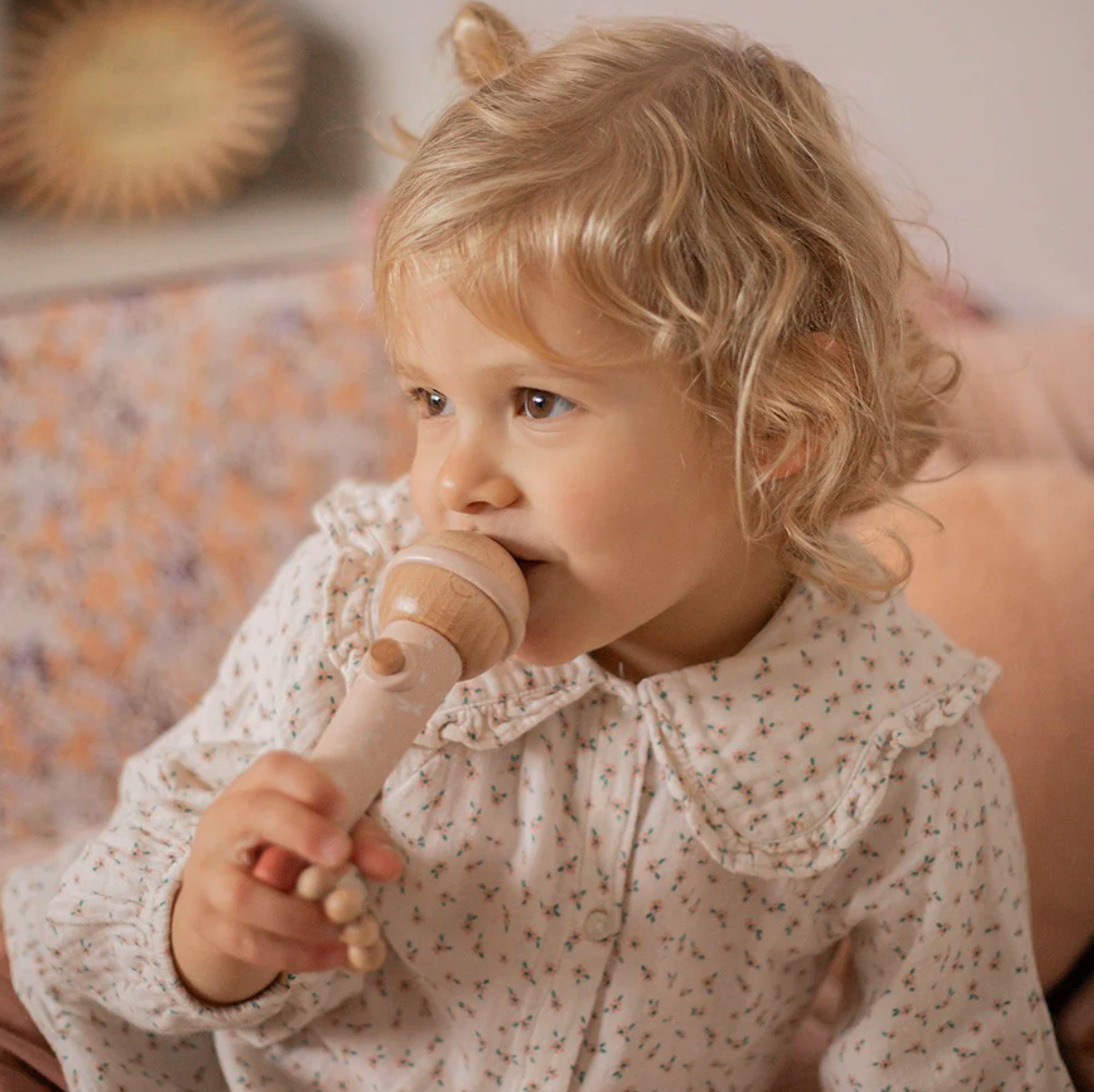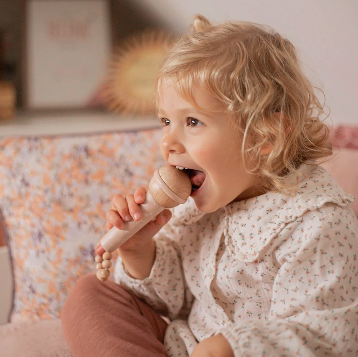 Votre petit musicien a-t-il une voix d’ange ? Avec ce microphone en bois rose de Label Label, il pourra exprimer tout son talent vocal ! Facile à tenir grâce aux perles de bois ergonomiques, ce micro invite les enfants à chanter et s’amuser. En appuyant sur le bouton de lecture, ils peuvent ajouter une touche interactive à leur performance.
