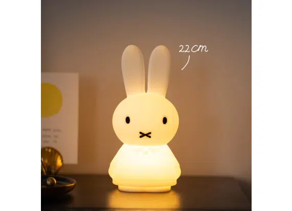 Miffy brille avec son cœur d’or. Une douce lampe sans fil enveloppée dans un charme intemporel, prête à égayer votre journée avec sa lueur.