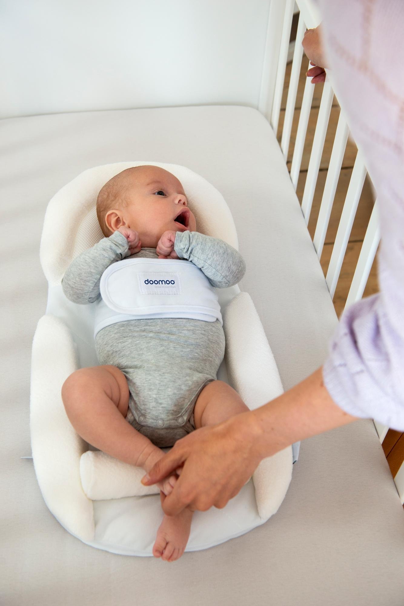 Le nid de couchage Suprême Sleep Plus de Doomoo Basics assure une bonne position de couchage dorsale et une qualité de sommeil optimale aux bébés dès la naissance.