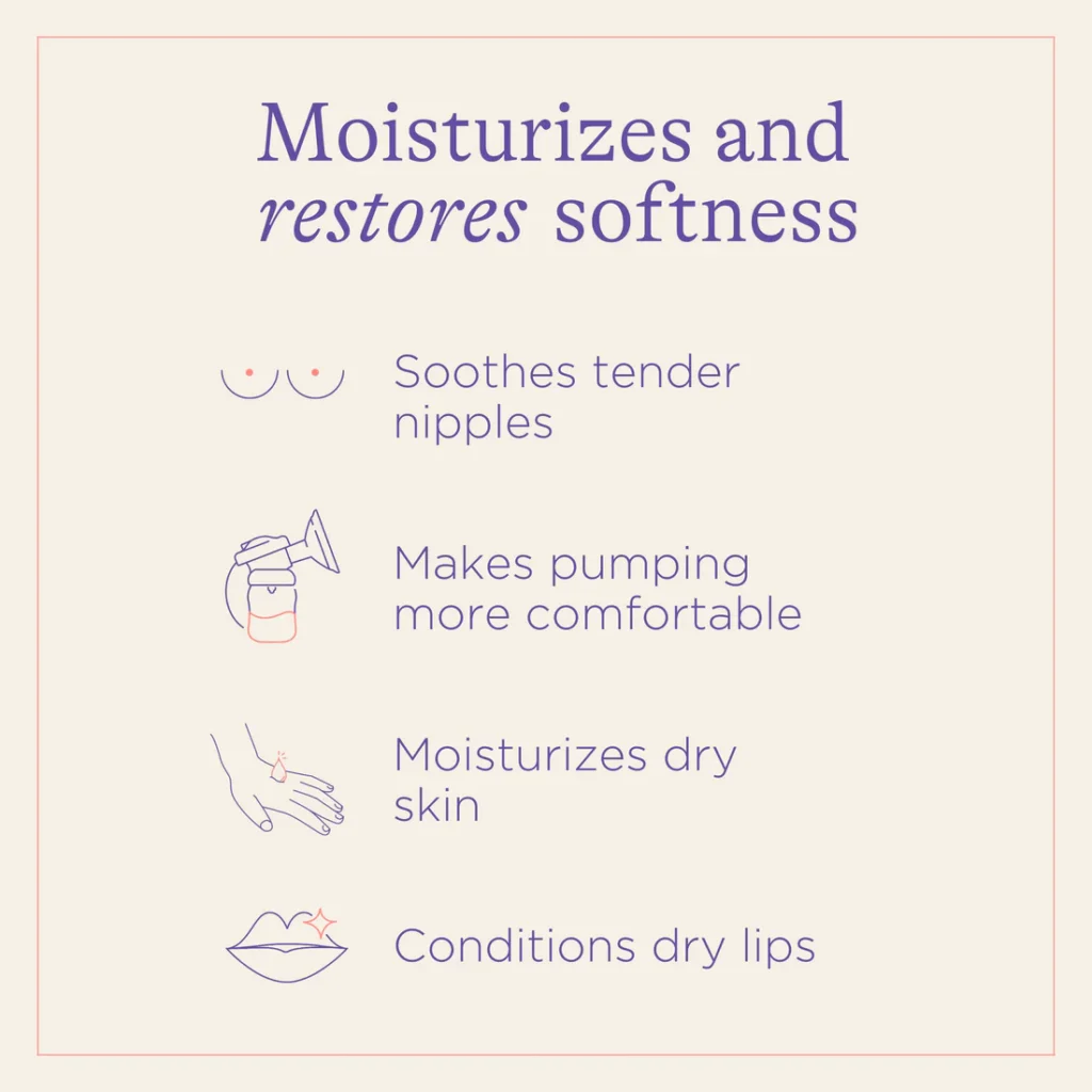 – Pas besoin de retirer avant d’allaiter. – Le baume d’allaitement Bio Lansinoh peut s’utiliser également pendant la grossesse pour soulager la peau sèche.