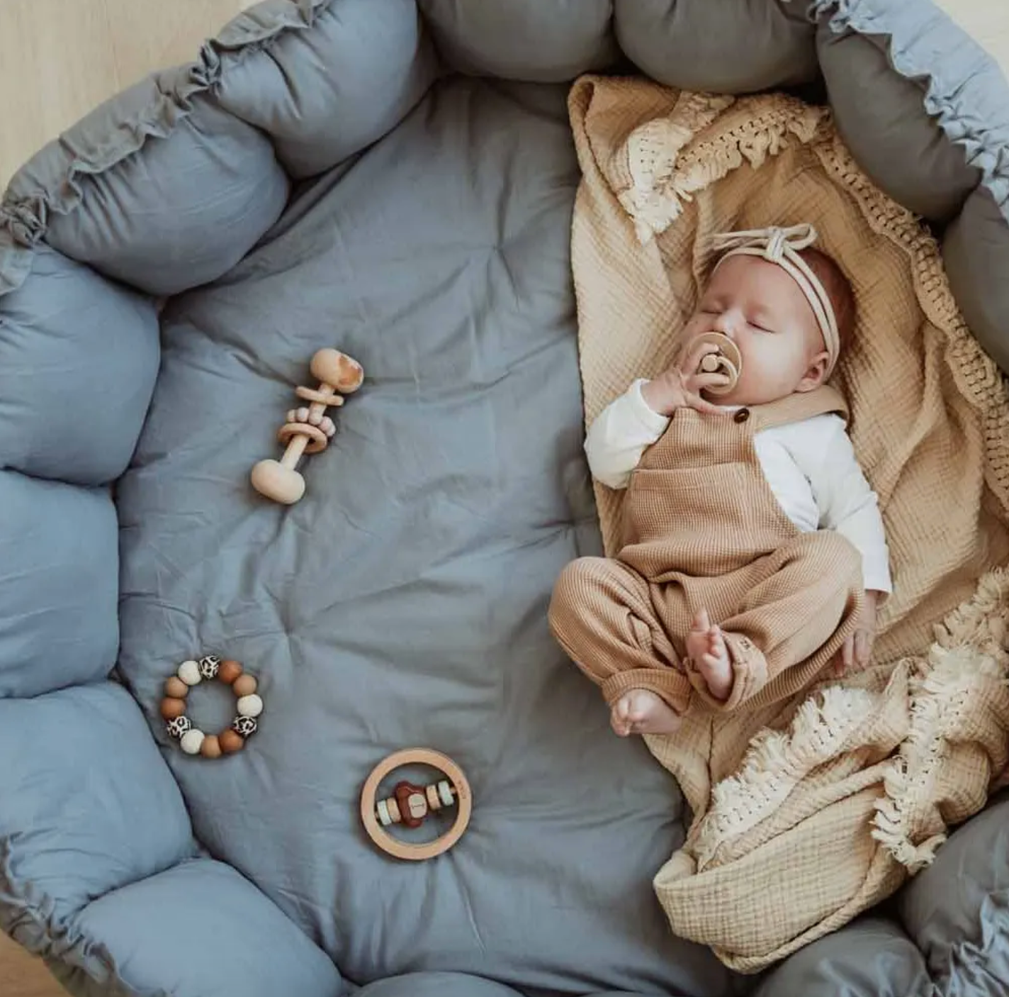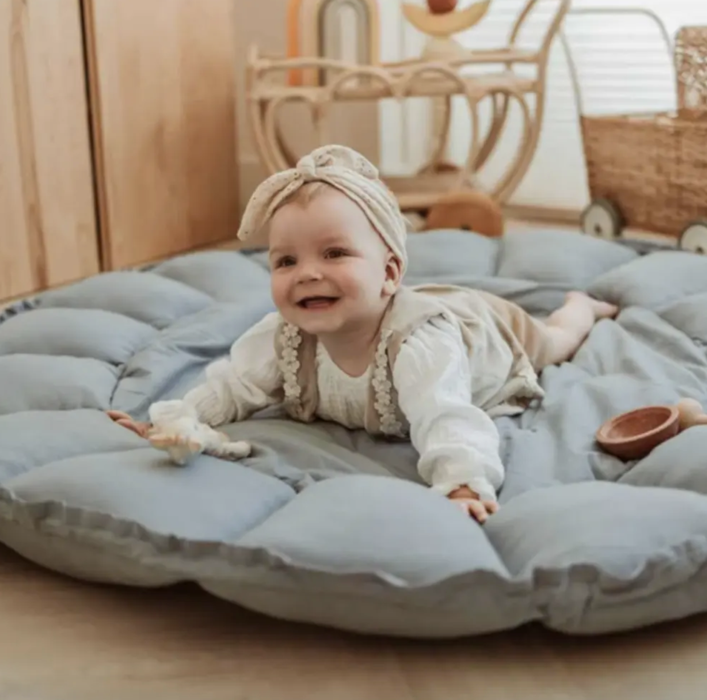 Le Play&Go Bloom Dusty Blue est un tapis de jeu 3-en-1 innovant, conçu pour évoluer avec votre enfant. En relevant ses pétales, il devient un petit nid douillet et sécurisé, parfait pour les nouveau-nés grâce à ses rebords matelassés. Déployé, il s’ouvre comme une fleur pour offrir un large tapis confortable, idéal pour le jeu supervisé, le temps sur le ventre et l’exploration sensorielle.