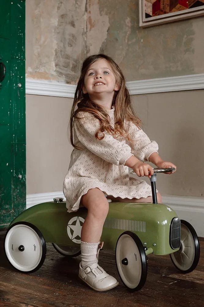 Le porteur vintage métal vert de Vilac est le jouet parfait pour les apprentis pilotes ! Avec son look rétro et ses grandes roues en caoutchouc, il offre une stabilité exceptionnelle pour les courses et déplacements à toute vitesse. Idéal pour développer l’autonomie, l’équilibre et la motricité psychomotrice, ce porteur durable est un incontournable. Son design élégant et ses couleurs rétro ajoutent une touche décorative à la chambre de votre enfant, tout en encourageant son développement.