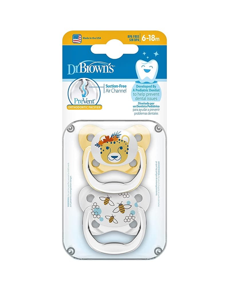 Les Sucettes PreVent Dr. Brown’s, 6-18 mois, abeille et tigre, en paquet de 2, sont spécialement conçues pour répondre aux besoins de confort de bébé tout en prévenant les problèmes dentaires. Développées en collaboration avec des orthodontistes, ces sucettes garantissent la sécurité des futures dents de votre bébé.