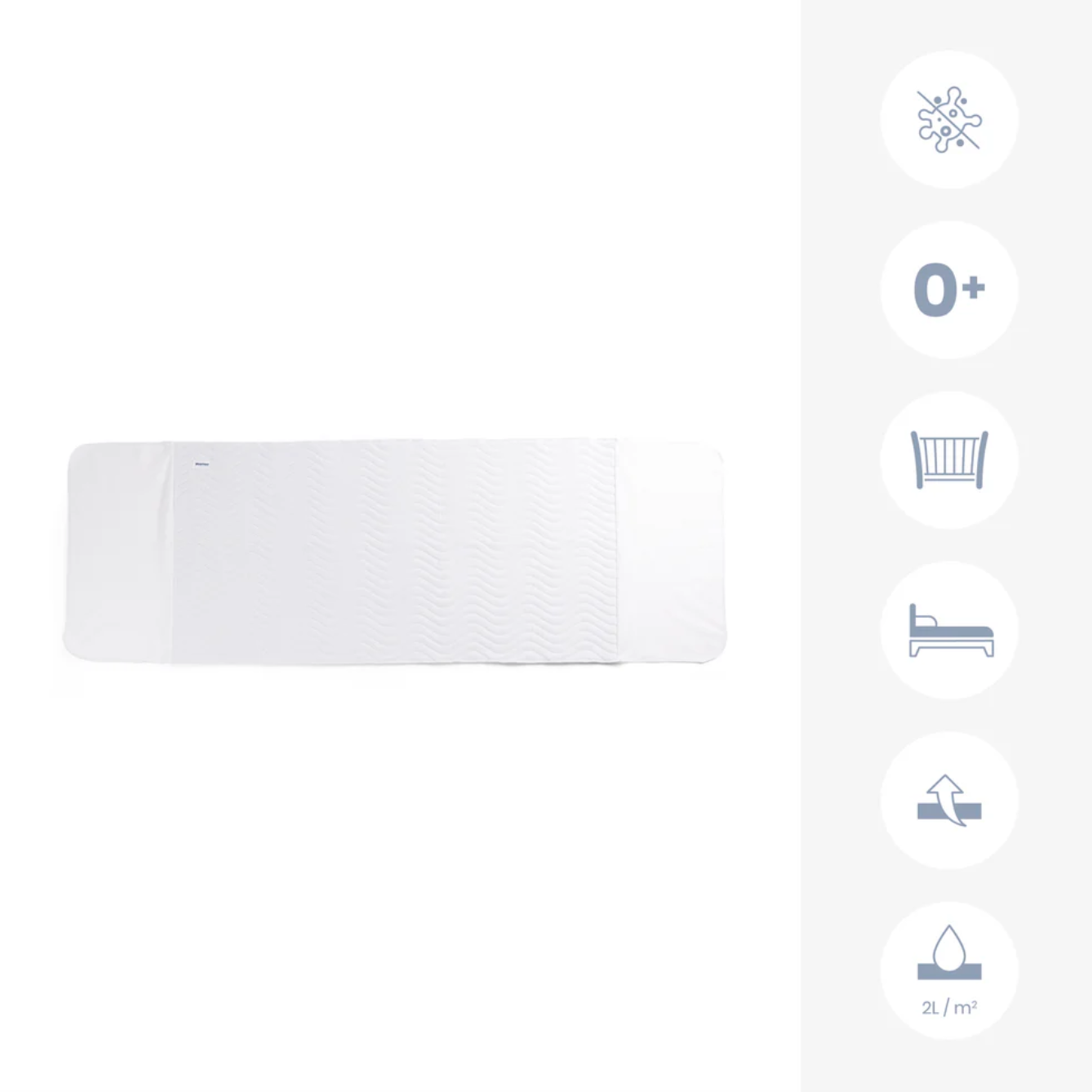 Afin de changer facilement le drap, le protège drap ABSOPLUS Doomoo se place directement sur le drap. ABSOPLUS Doomoo convient pour deux tailles de lit, et s’adapte à la longueur d’un matelas pour bébé (60 x 120 cm) ainsi qu’à la largeur d’un matelas standard (90 x 200 cm).