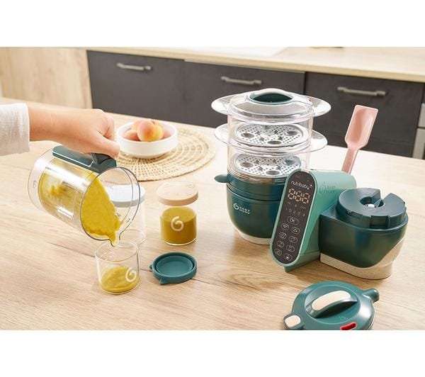 Robot multifonction bébé 6 en 1 avec fonctions pré-programmées : cuisson vapeur, mixage, décongélation, stérilisation, chauffe-biberons et chauffe-petits pots
