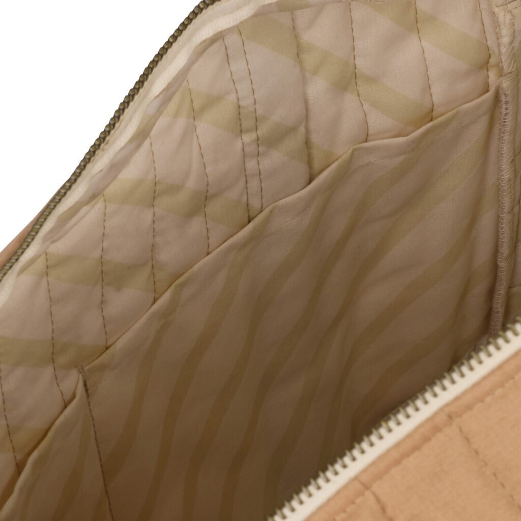 Il peut-être porté à l’épaule grâce à ses grandes anses et il s’adapte parfaitement à toutes les poussettes grâce à ses mousquetons détachables inclus, pour une fixation facile et sécurisée.