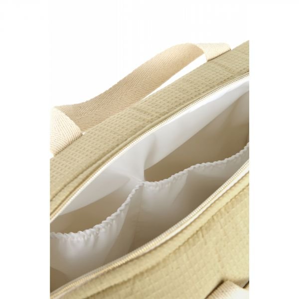 Ce sac à langer en coton bio se nettoie facilement grâce à sa doublure résistante à l’eau. Pratique et léger, le sac à langer Gala comporte une jolie fermeture zip dorée et deux poches intérieures et extérieures de rangement pour ranger les couches, les biberons ou les produits de toilette. Ce sac à langer Nobodinoz est confortable à porter grâce à sa texture nid d’abeille toute douce et ses deux anses en tresses de coton facilitant le transport.