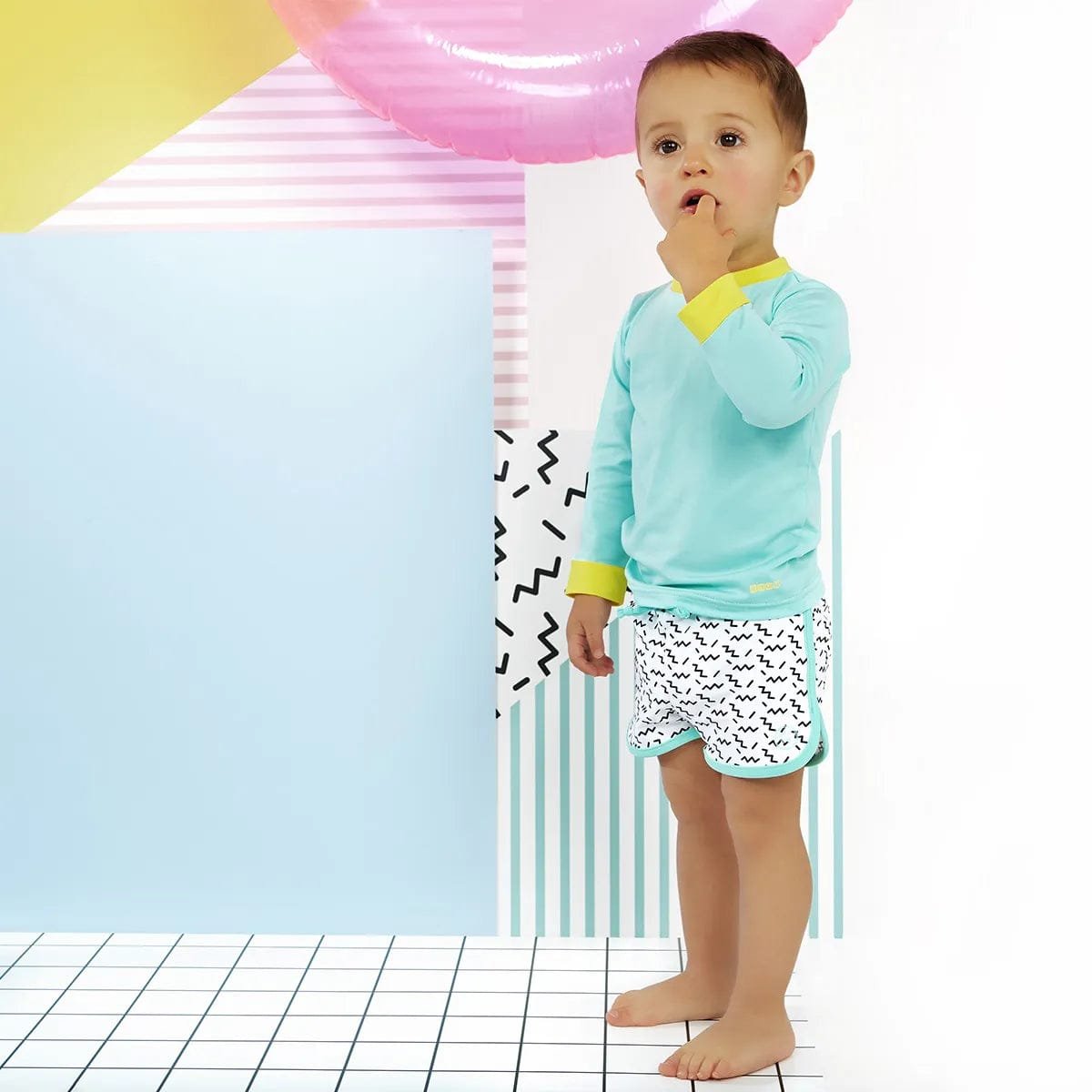Vous cherchez un joli short de bain anti-UV pour les bébés garçons ou filles, et adapté à la fois à la piscine et à la plage ? Alors vous allez craquer pour ce maillot de bain anti-UV ZigZag !