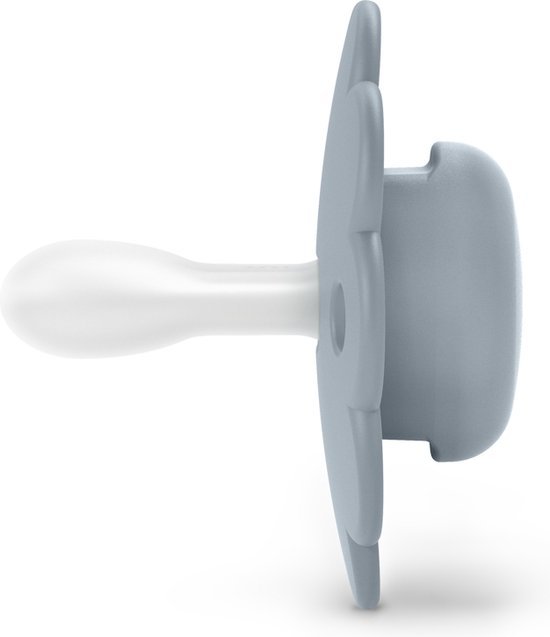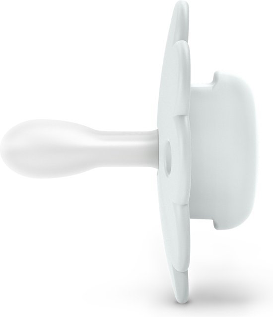 La forme de la tétine présente plusieurs avantages. Une tétine en forme de mamelon imite la forme du sein, ce qui rend cette tétine idéale pour une utilisation en combinaison avec l’allaitement. Le bouclier a également des trous de ventilation, ce qui empêche l’irritation de la peau autour de la bouche de votre enfant. Les sucettes conviennent aux enfants de 0 à 6 mois.