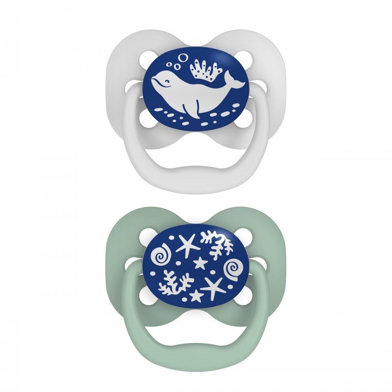 Le bouclier unique et ventilé réduit les irritations en permettant à la peau sensible de bébé de respirer. Sa caractéristique luminescente la rend visible dans l’obscurité, facilitant son repérage, de jour comme de nuit.