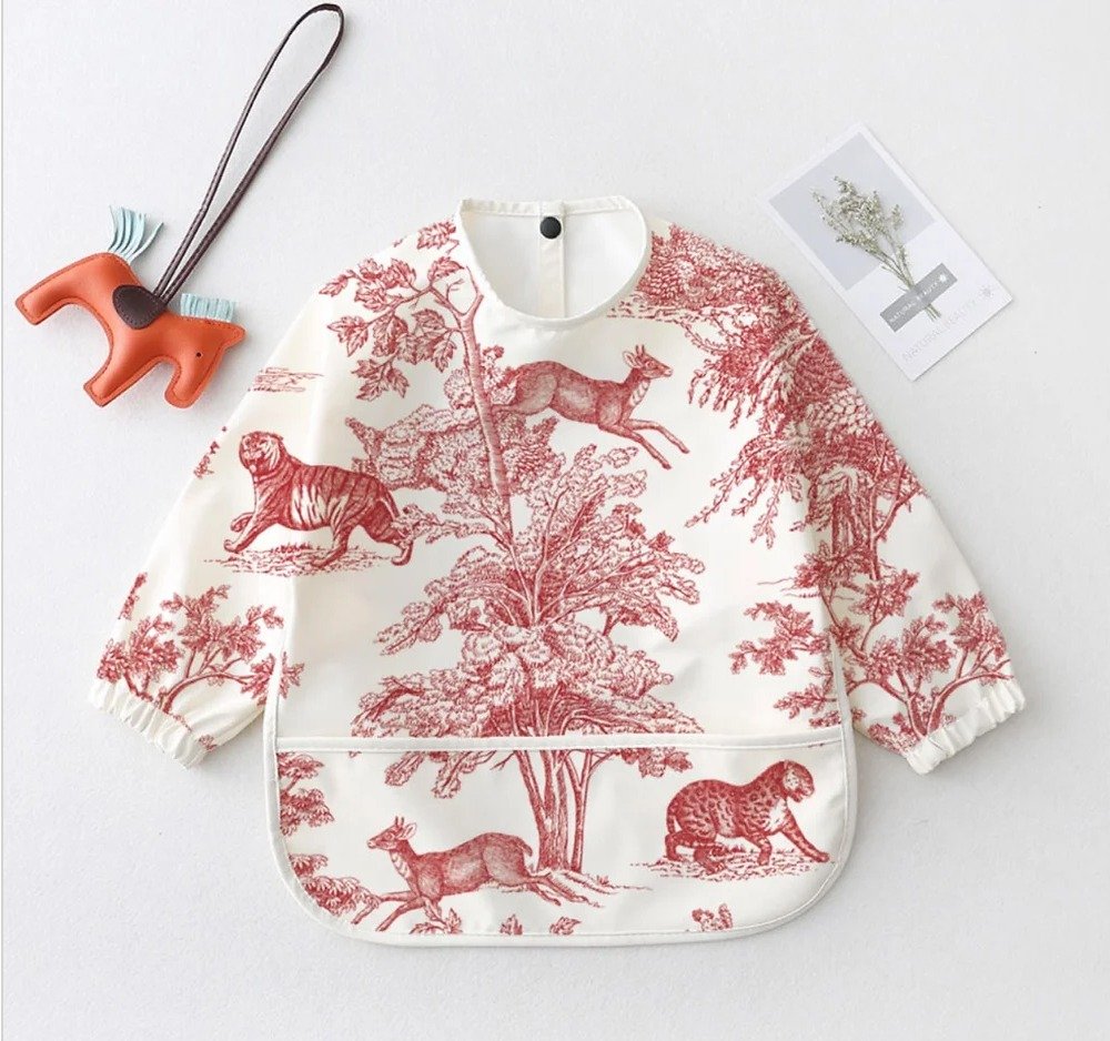 Le design “toile de jouy” de ce tablier-bavoir apporte une touche de sophistication à chaque repas. Disponible en couleur brique, il s’intègre parfaitement dans la garde-robe de bébé tout en restant pratique et élégant.