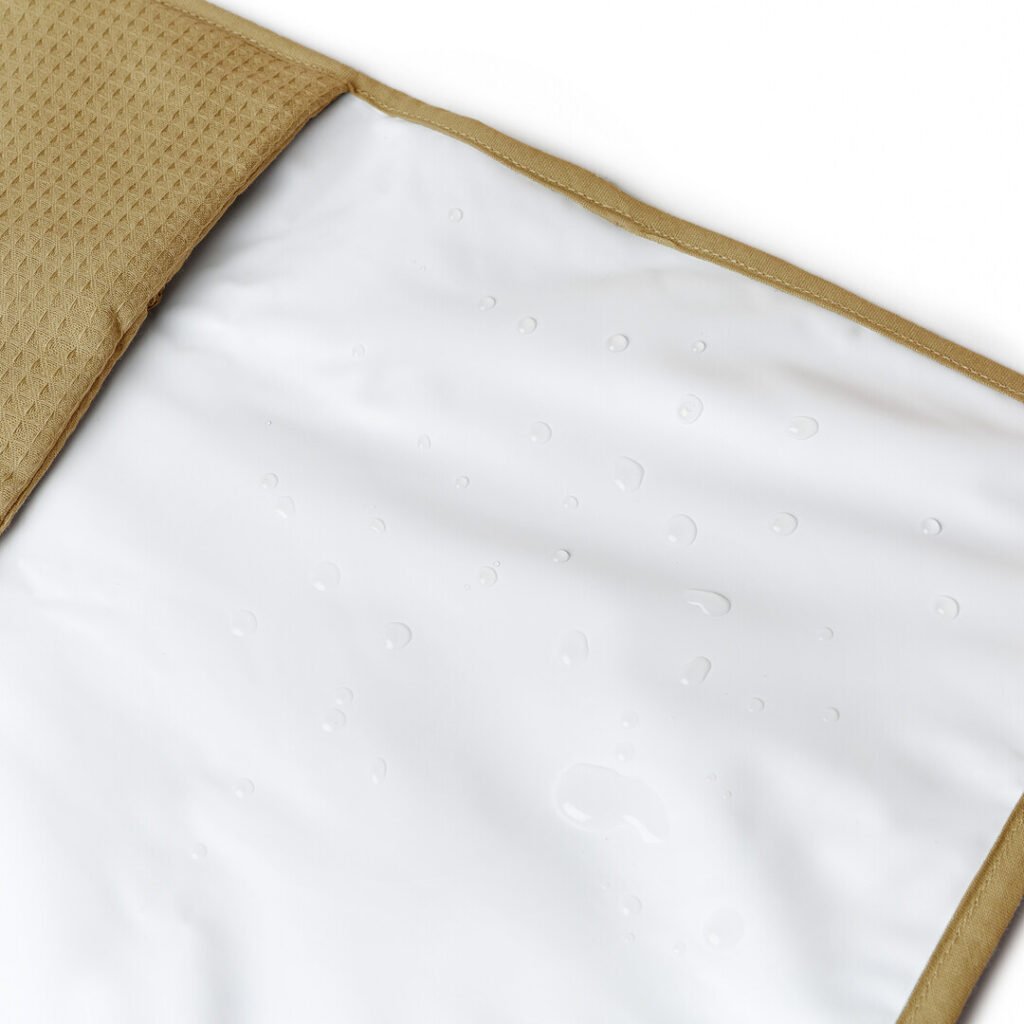 Ses aspects pratiques : une doublure imperméable hyper facile à nettoyer, une pochette zippée pour garder les lingettes de bébé, et une pochette soufflet pour y ranger ses couches. Changez bébé n’importe où, avec le même confort qu’à la maison.