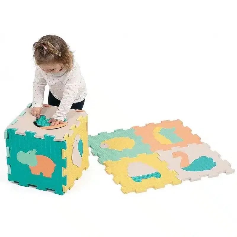 S’éveiller en tout sécurité… Confortables, hygiéniques, colorées et aux textures travaillées, les dalles en mousse de LUDI accompagneront bébé dans ses premiers jeux en toute sécurité ! Pour une vie douce et colorée ! Sur le thème des animaux, les dalles en mousse isolent du froid, amortissent les chocs, résistent aux petites dents et stimulent la motricité fine de bébé. Accrochées les unes aux autres, les 9 dalles en mousse offrent à bébé un superbe tapis de jeu de 90 x 90 cm, idéal pour marcher à quatre pattes ou pour s’amuser avec ses jouets préférés. Solides, les dalles s’encastrent bien les unes aux autres et leur épaisseur (1,2 cm) assure un confort pour les enfants. En plus du grand puzzle, les animaux proposent également une activité d’encastrement. Les différentes textures, les couleurs et les motifs encouragent la motricité et l’acuité visuelle de votre enfant tout en stimulant son imagination. Les dalles peuvent être utilisées en intérieur, en tapis de jeu, et en extérieur sur une surface plane non glissante. Aérer les mousse 24h avant leur utilisation. Dalles nouvelle génération avec un taux de formamide inférieur à 200ppm. Dalles composées à 100% d’EVA. Lavables à la main à froid et résistent à la déformation.