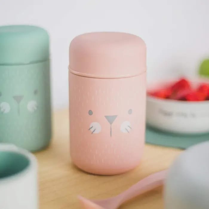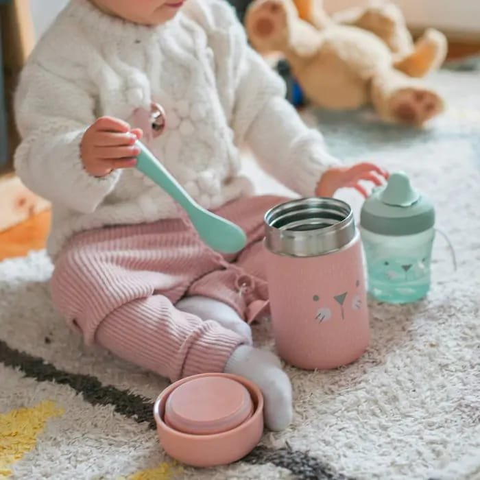 Ce thermos, d’une capacité de 400 ml, est idéal pour transporter purées et repas de bébé. Il est inodore, ne retient pas les saveurs et possède un joint hermétique avec une fermeture à vis. Avant la première utilisation et pour un nettoyage quotidien, il est recommandé de laver à la main avec de l’eau tiède savonneuse. Ne pas laver au lave-vaisselle, ne pas chauffer au micro-ondes et ne pas congeler. Pour une meilleure conservation de la température, préchauffez ou refroidissez le thermos avant utilisation en le remplissant d’eau chaude ou froide pendant 5 minutes, puis videz l’eau et ajoutez les aliments.