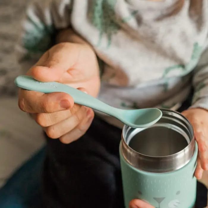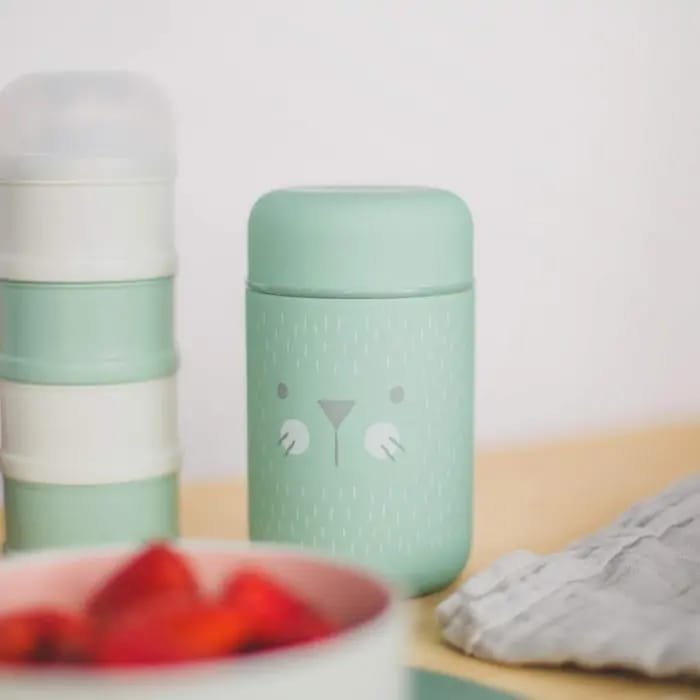 Ce thermos, d’une capacité de 400 ml, est idéal pour transporter purées et repas de bébé. Il est inodore, ne retient pas les saveurs et possède un joint hermétique avec une fermeture à vis. Avant la première utilisation et pour un nettoyage quotidien, il est recommandé de laver à la main avec de l’eau tiède savonneuse. Ne pas laver au lave-vaisselle, ne pas chauffer au micro-ondes et ne pas congeler. Pour une meilleure conservation de la température, préchauffez ou refroidissez le thermos avant utilisation en le remplissant d’eau chaude ou froide pendant 5 minutes, puis videz l’eau et ajoutez les aliments.